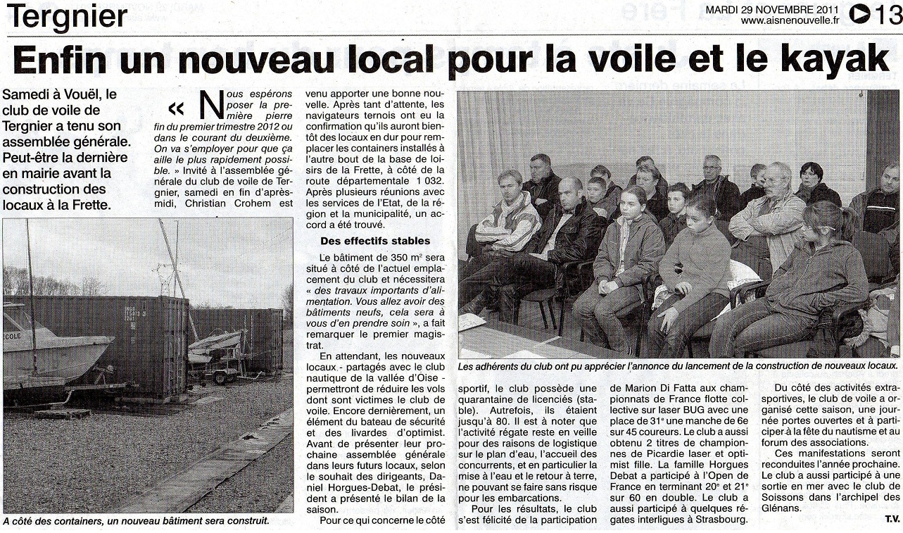 l'Aisne. Dimanche prochain 9 octobre se déroulera la 2ème régate Toutes
