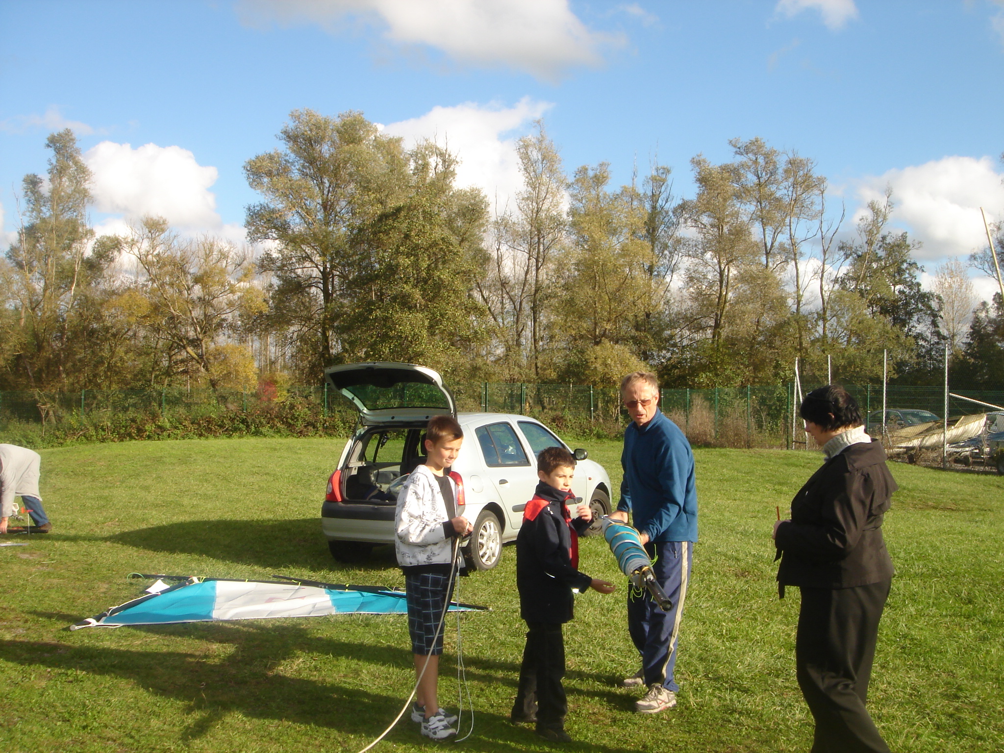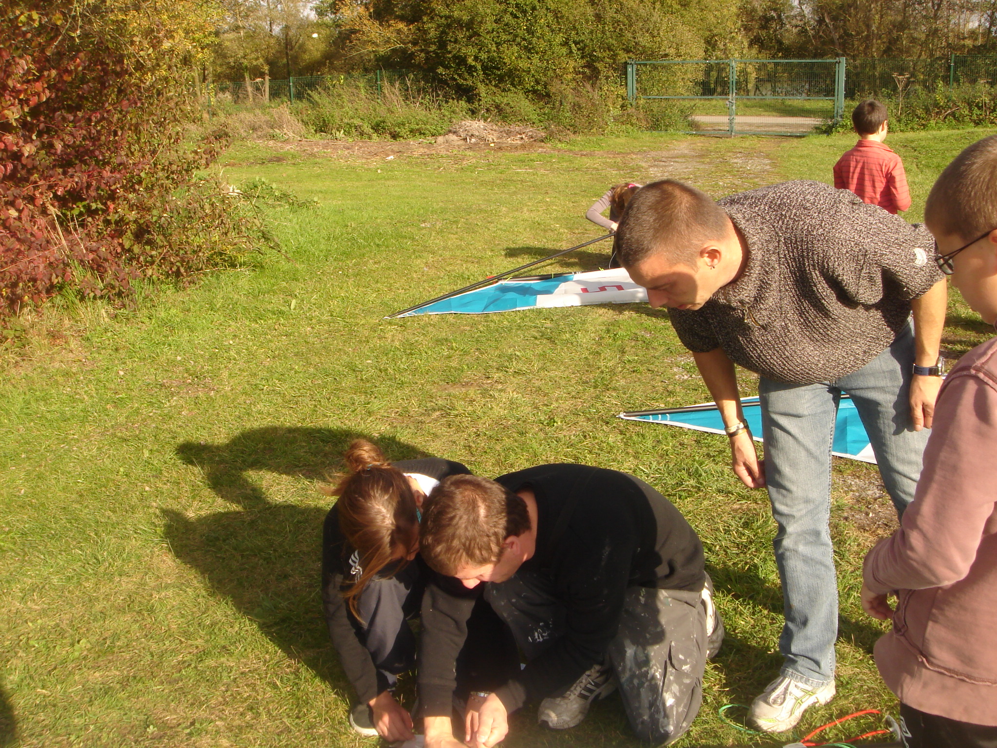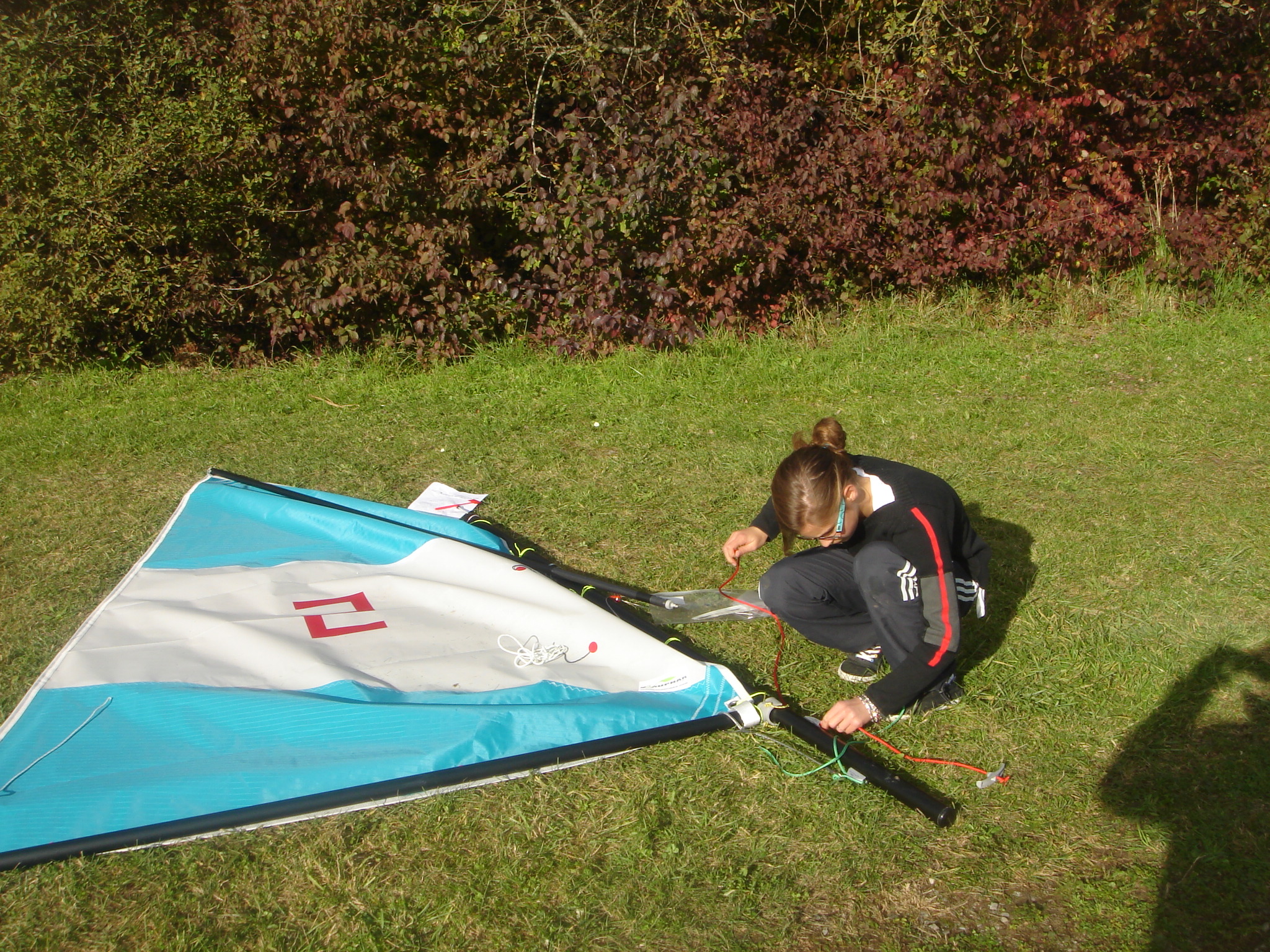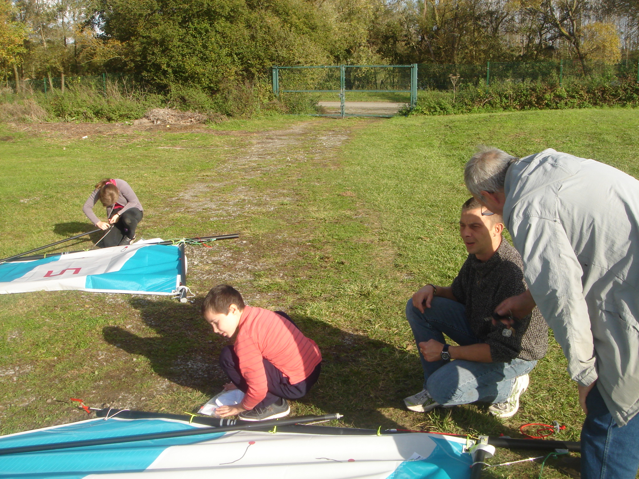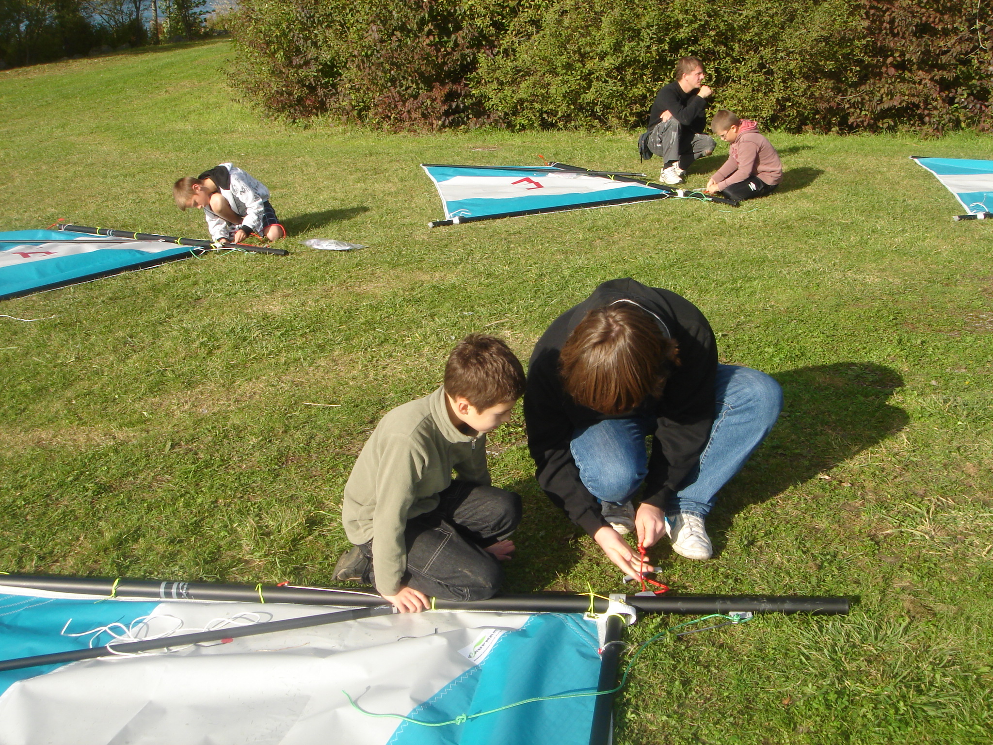 Préparation des nouveaux gréements pour le stage avec l'aide de quelques parents et anciens