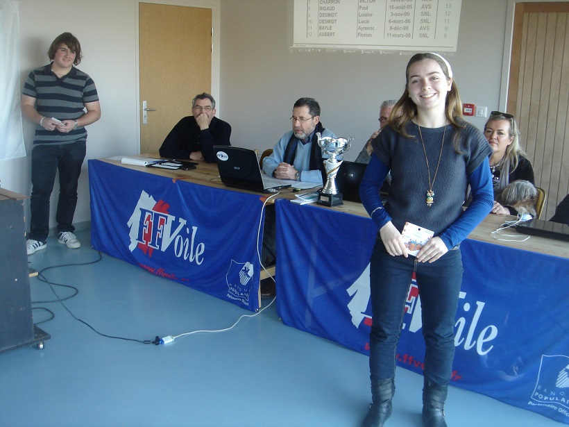 nous avons pu découvrir l'installation de notre ponton ! Malheureusement, suite au passage des bulldozers lors de la pose, le terrain est en mauvais état à cause de la boue. Il mesure18 mètres de long sur 2 mètres de large et cela ne sera pas de trop. De ce fait, pour fêter cela samedi prochain on fera des crêpes après l'entrainement ! Dimanche, le club accueillait pour la première fois dans les nouveaux locaux, l'Assemblée Générale du Comité Départemental de Voile de l'Aisne. Les représentants de Cap'Aisne n'étaient pas présents, mais tous les clubs de l'Aisne étaient représentés. Tous ont pu apprécier le site et espèrent venir régater prochainement comme cela se faisait, il y a maintenant presque 10 ans déjà. Et cela sera désormais bientôt possible, mais lorsque les travaux de la cale seront terminés....Ci-contre notre championne de l'Aisne Lucie Bove en laser 4.7 et Maxence Thévenot en laser standard. Bravo à tous les deux ! |