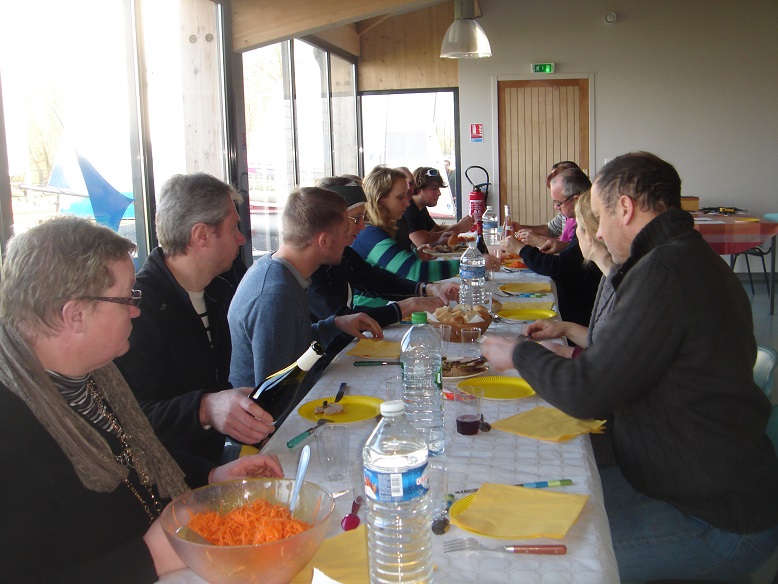 Ecore une fois, la météo s'est bien plantée. Cela a permi d'effectuer cette journée de formation dans de trés bonnes conditions, avec une trés bonne participation des membres du club. La matinée a été consacrée à l'accueil des participants suivi d'un aperçu théorique de l'organisation d'une régate, moyens matériels et humains.11h30 pause pour préparer le repas, le matériel de navigation.... 13h30 1er signal, l'aperçu est envoyé sur le mât à terre.....La régate commence, 2 courses sont envoyées. 15h30, retour à terre, retour sur les petites erreurs diverses vues dans le débriefing, et prévisions d'une nouvelle régate test club qui s'effectuera le samedi après-midi 14 mars. Merci à tous les participants, et aussi à ceux et celles qui ont participé à l'organisation du repas, des desserts, vaisselle, rangement de la salle... Cela a contribué largement au succès de cette journée. A bientôt |
