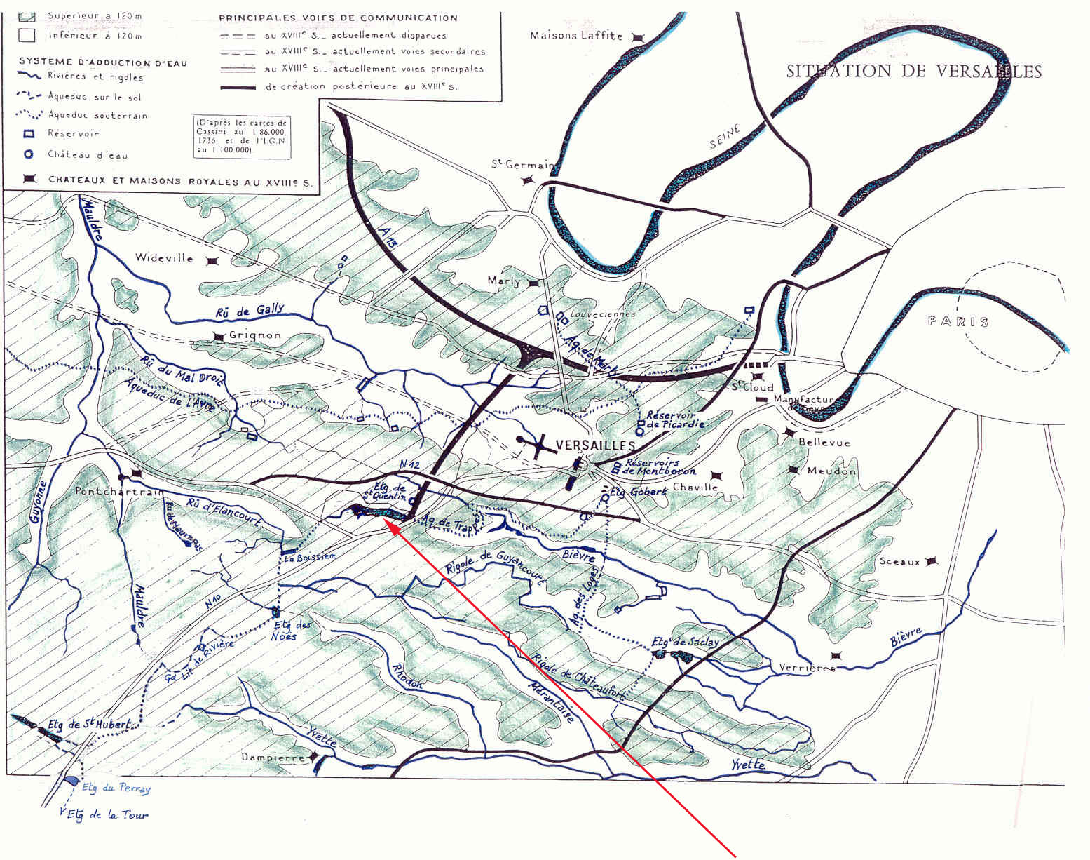 l’étang de Trappes (aujourd’hui St Quentin) se trouvait à 5 m au-dessus du