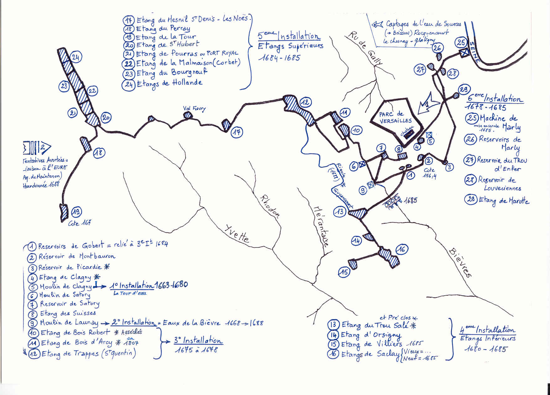 réservoir de Thetys, ceux de Bois d’Arcy et Bois Robert (asséchés en 1807) à 8 m au-dessus. Le drainage du plateau de Saclay et